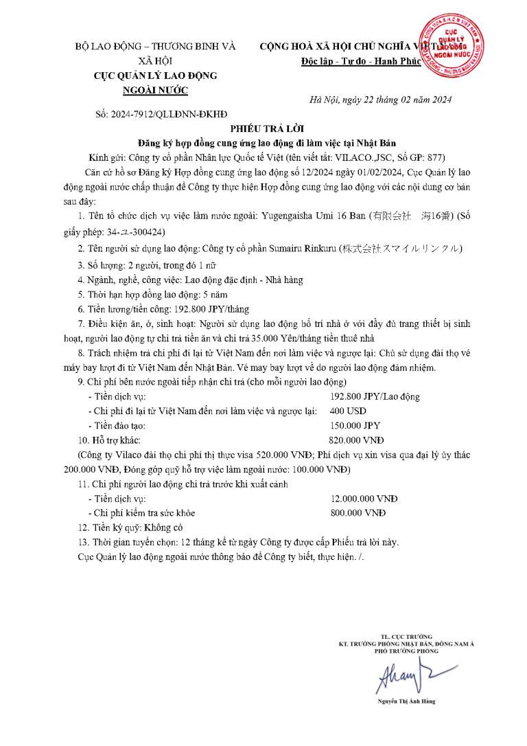 PTL 2024-7912 QLLĐNN-ĐKHĐ của Cục QLLĐ ngoài nước