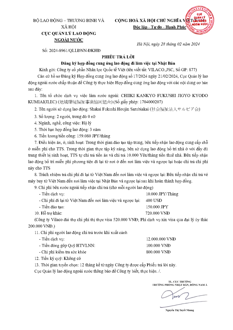 PTL 2024-8961 QLLĐNN-ĐKHĐ của Cục QLLĐ ngoài nước