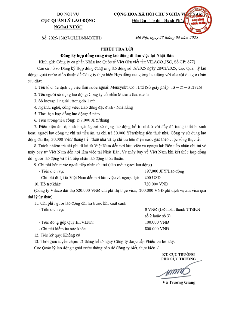 PTL 2025-13027 QLLĐNN-ĐKHĐ của Cục QLLĐ ngoài nước