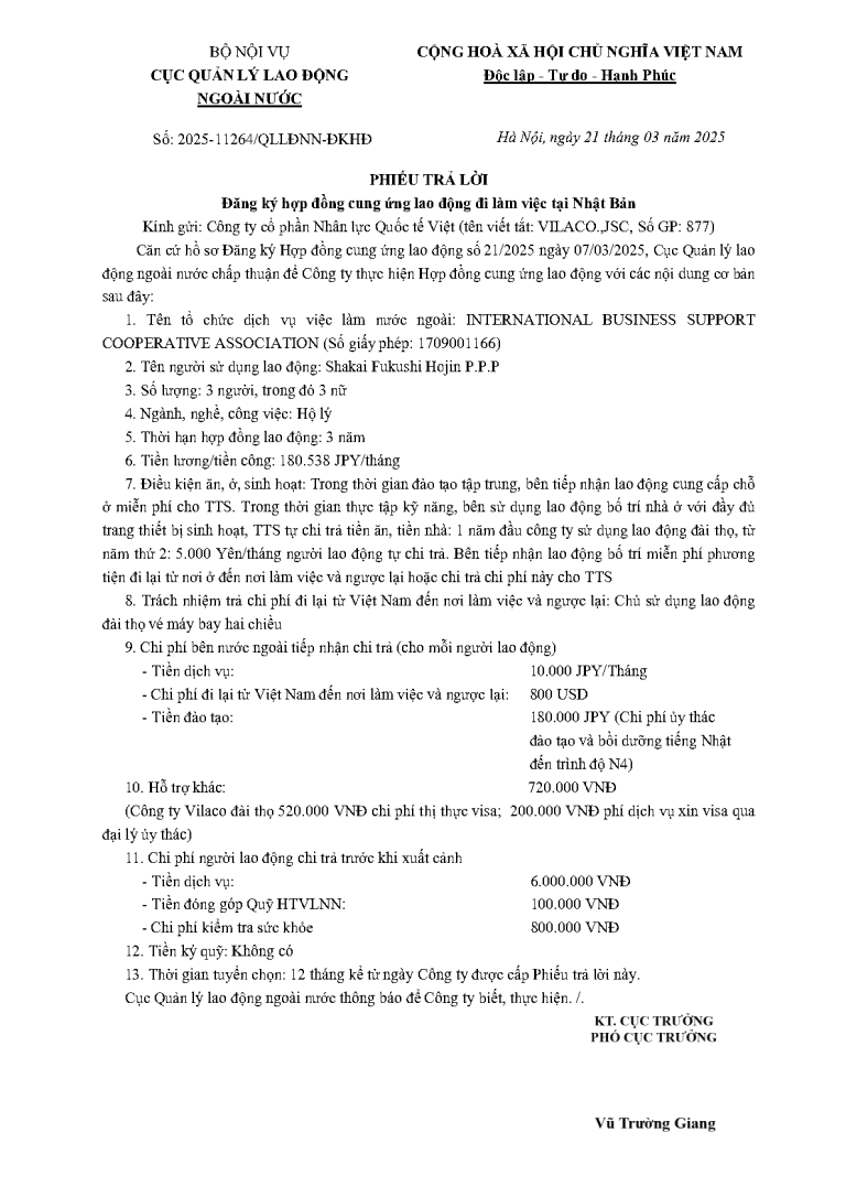 PTL 2025-11264 QLLĐNN-ĐKHĐ của Cục QLLĐ ngoài nước