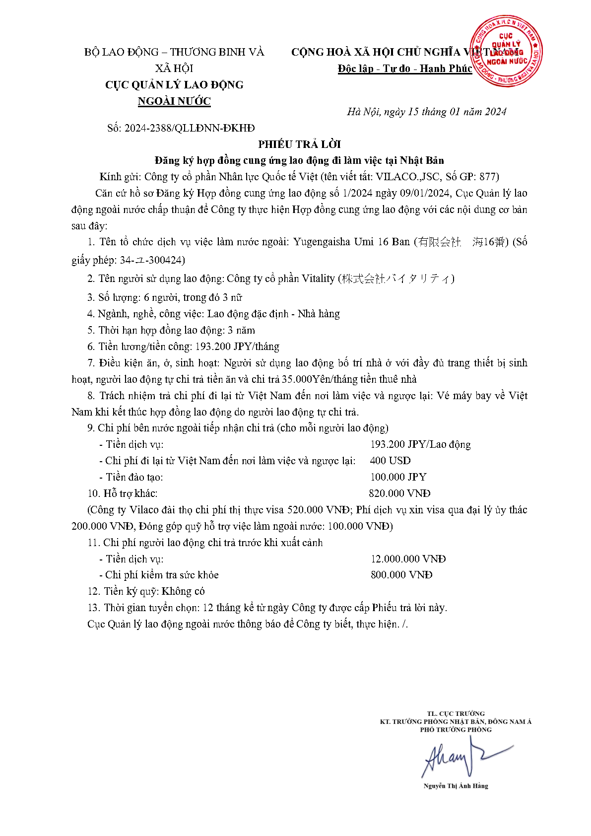 PTL 2024-2388 QLLĐNN-ĐKHĐ của Cục QLLĐ ngoài nước