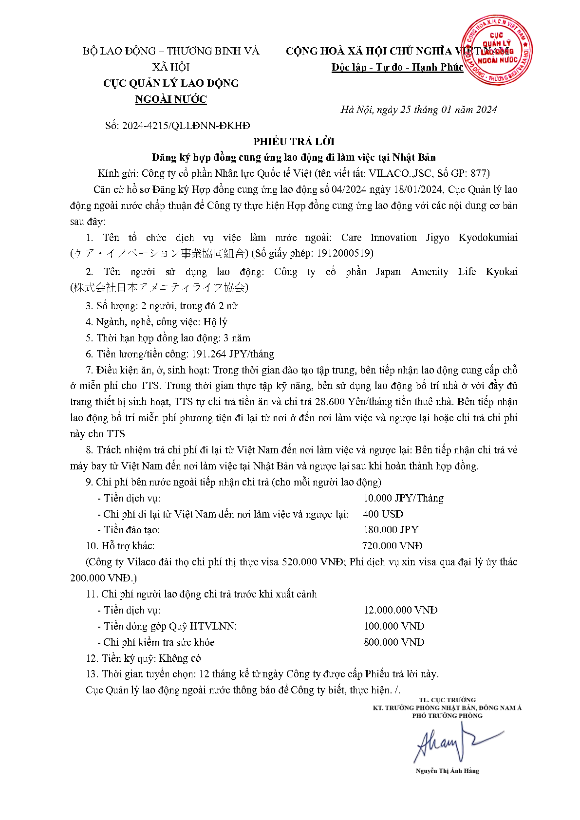 PTL 2024-4215 QLLĐNN-ĐKHĐ của Cục QLLĐ ngoài nước