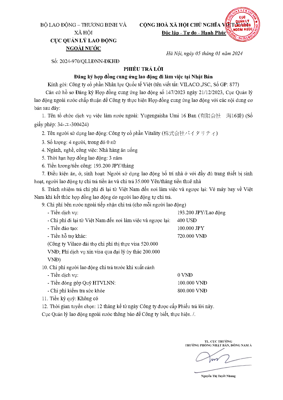 PTL 2024-970 QLLĐNN-ĐKHĐ của Cục QLLĐ ngoài nước