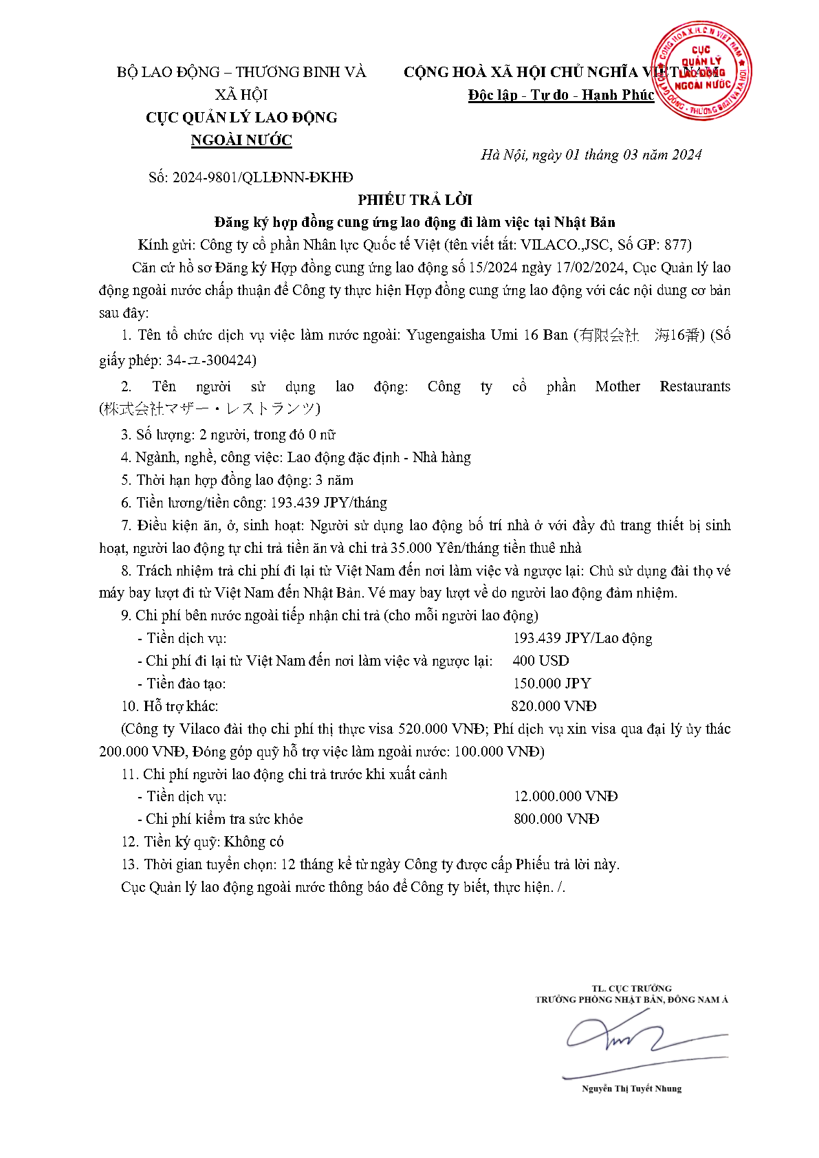 PTL 2024-9801 QLLĐNN-ĐKHĐ của Cục QLLĐ ngoài nước