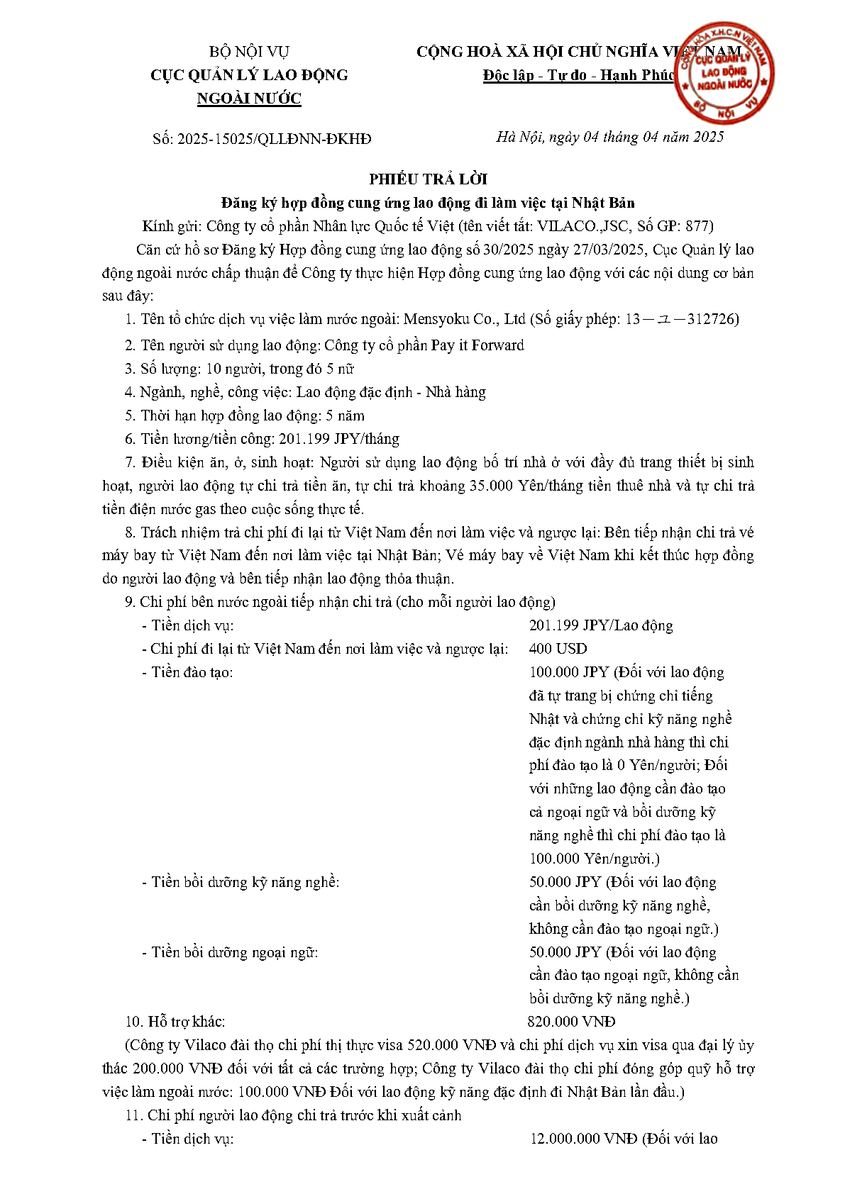 PTL 2025-15025 QLLĐNN-ĐKHĐ của Cục QLLĐ ngoài nước