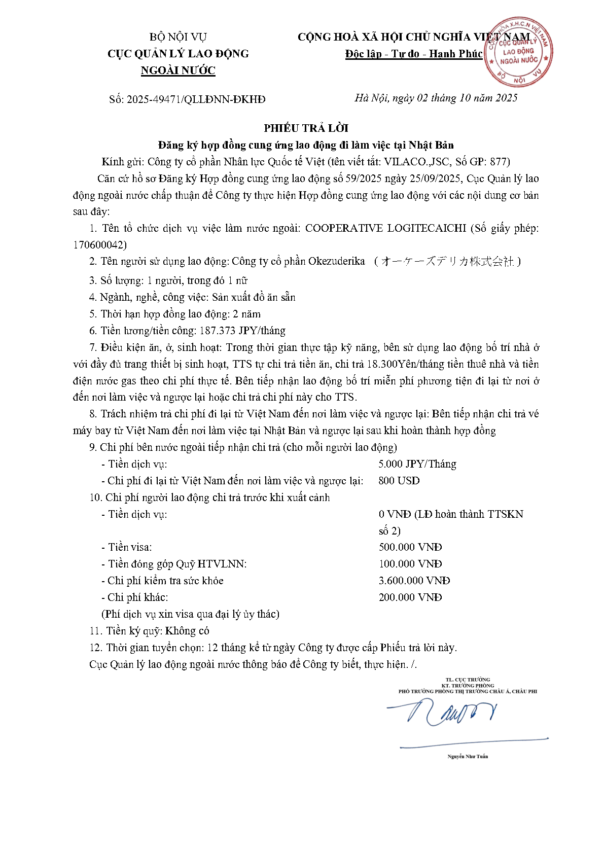 PTL 2025-49471 QLLĐNN-ĐKHĐ của Cục QLLĐ ngoài nước