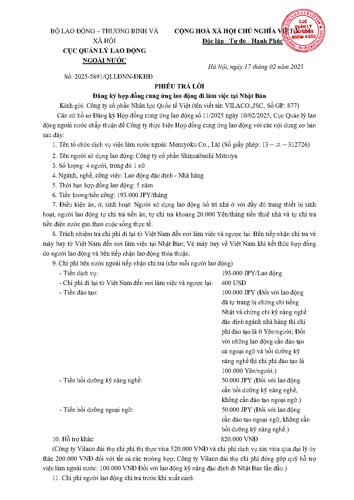 PTL 2025-589/QLLĐNN-ĐKHĐ của Cục QLLĐ ngoài nước